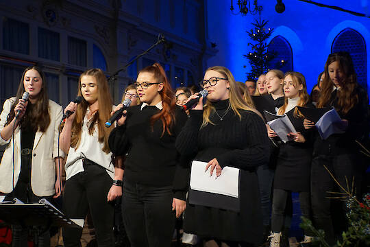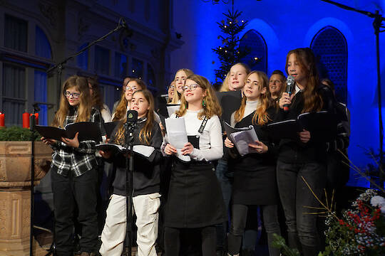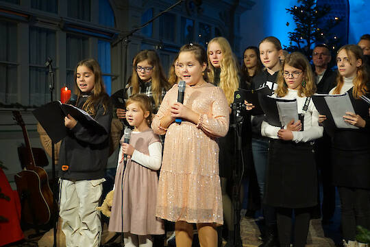 Frau Weidmüller, die Chorleiterin und Musiklehrerin der Ev. Werkschule, ist es wieder einmal gelungen, die Gäste zu beeindrucken.