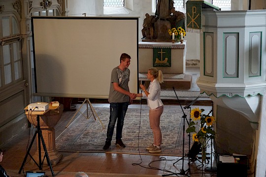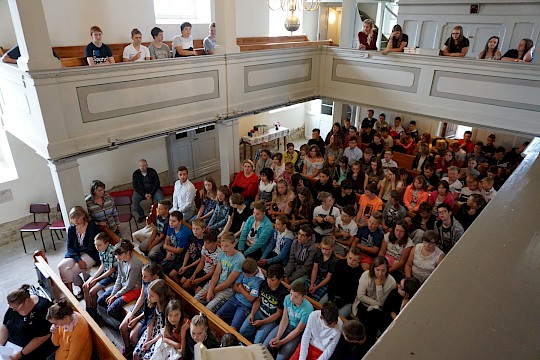 Bevor die Zeugnisausgabe stattfand, besuchten wir die Milkauer Kirche, wo wir einen Abschlussgottesdienst durchführten. Dabei erfreute uns der Chor mit einigen Liedern, es gab eine Andacht und es wurden Kollegen verabschiedet und begrüßt.