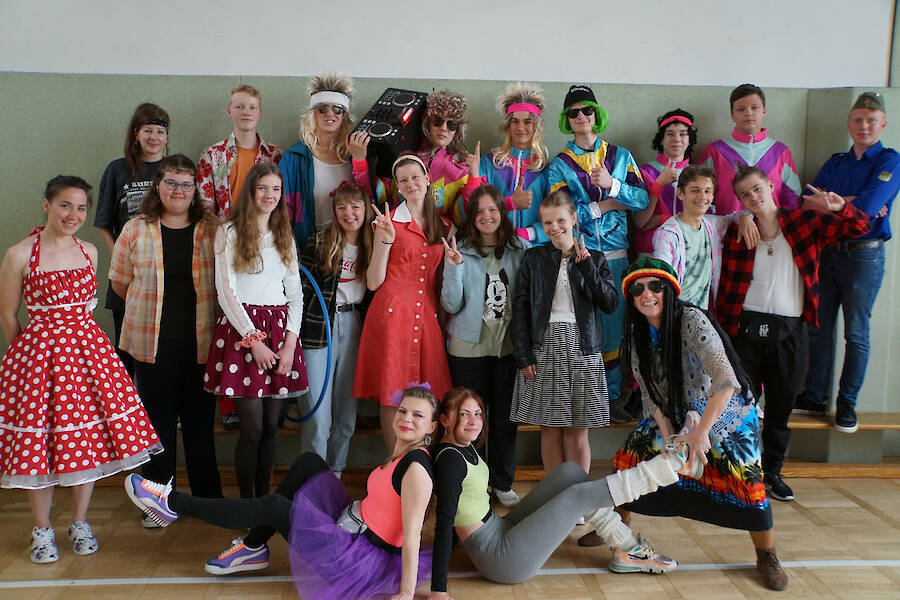 Der Mai war für unsere diesjährigen Absolventinnen und Absolventen ein erlebnisreicher Monat. Bevor die Prüfungen losgingen, belebten sie die Schule noch einmal mit einem Kuchenbasar in der Mittagspause, einer Mottowoche mit vielen witzigen Kostümen zum Thema "Tiere, Bad Taste, 60er-90er, Geschlechtertausch und Abendgarderobe", welche mit dem Abschlussfest am Donnerstag, dem 19.05.2022 endete. Für die anstehenden schriftlichen und mündlichen Prüfungen wünschen wir ihnen ganz viel Erfolg und dass sie ihr Potenzial ausschöpfen.