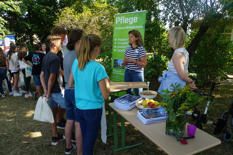 Die Auftaktveranstaltung fand im grünen Klassenzimmer der Schule statt, welches eine inspirierende Umgebung für Präsentationen und Workshops bot. Die Netzwerkpartner präsentierten Informationsmaterialien, interaktives Lehrmaterial und Aufsteller, um die verschiedenen Facetten der Pflege und sozialen Dienste zu beleuchten.