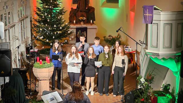 Unter dem Motto „Herzensache Frieden stiften“ begeisterte der Chor unter Leitung von Frau Susan Weidmüller zum neunten Mal die zahlreichen Gäste sowohl mit klassischen Weihnachtmelodien als auch mit modernen Liedern, die zum Thema passten.