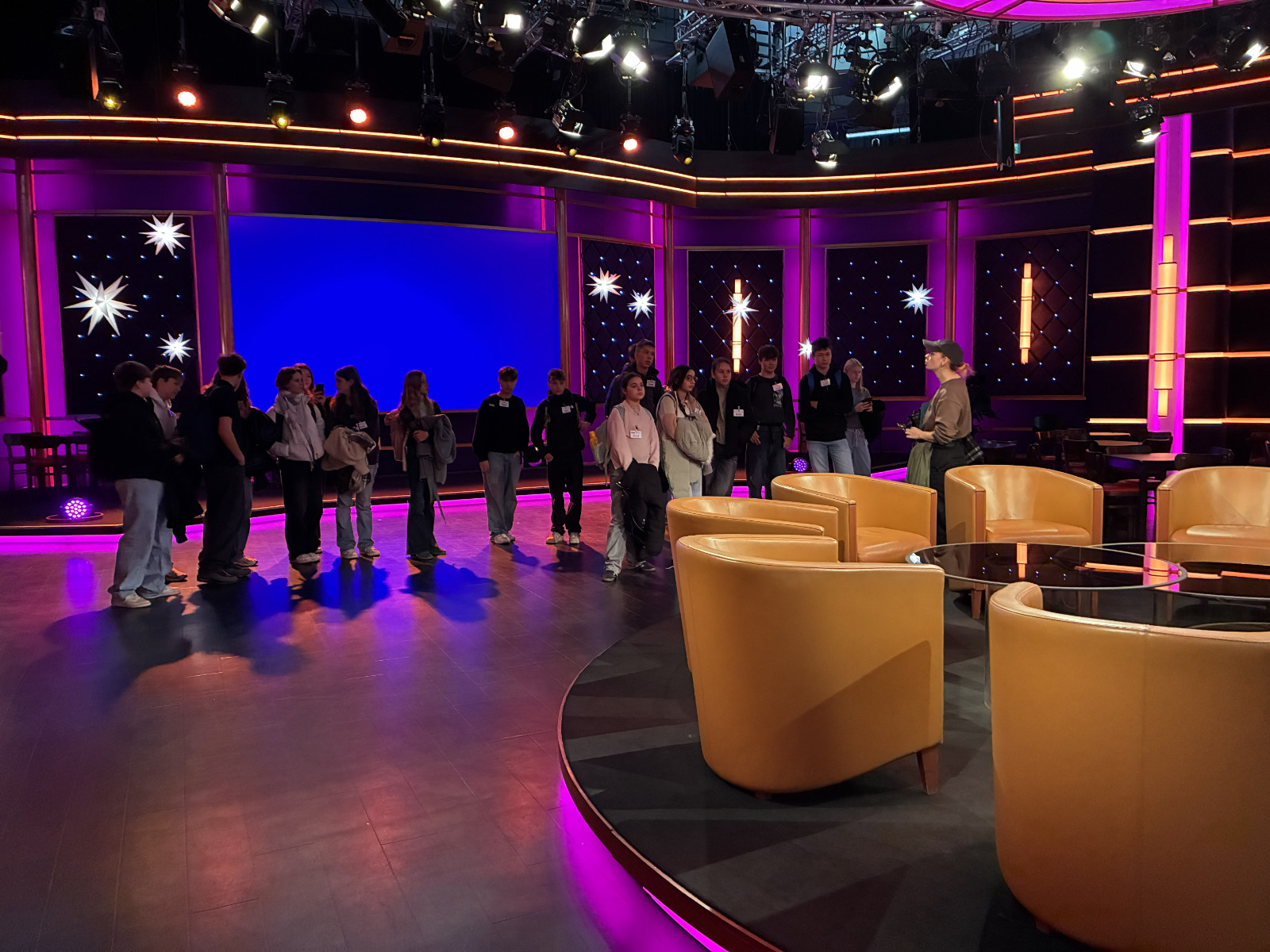 Bei einer zweistündigen Studiotour erkundeten die Jugendlichen die Drehorte bekannter Sendungen wie In aller Freundschaft und Sachsenklinik. Auch die Kulisse des beliebten Riverboat-Talks sorgte für Begeisterung. Dabei wurde deutlich, wie vielfältig die Medienberufe sind: Regie, Kamera, Ton- und Lichttechnik, Maskenbildnerei, Kostümgestaltung, Tischlerei und Requisite – alle tragen dazu bei, dass Fernsehen entsteht.