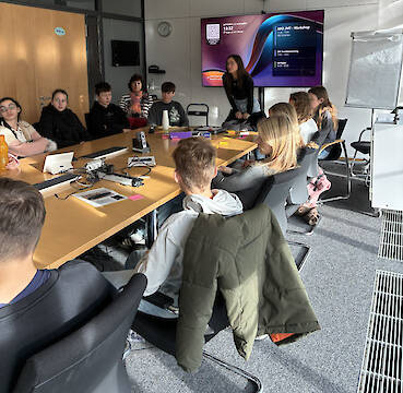 Im Anschluss folgte ein praxisnaher Workshop zum Thema „Content-Erstellung für TikTok und Instagram“. Die Klasse diskutierte, was einen erfolgreichen Post ausmacht, wie man Reichweite erzielt und welche Verantwortung Social Media mit sich bringt. Zum Abschluss produzierten die Schüler eigene Kurzvideos – kreativ und mit viel Spaß.
