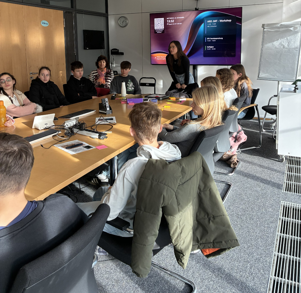 Am 12. November besuchte unsere 8. Klasse den Mitteldeutschen Rundfunk (MDR) in Leipzig, um spannende Einblicke in die Welt der Medien und zahlreiche Berufsfelder im Fernsehen zu gewinnen. Gemeinsam mit Klassenlehrerin Frau Schmitz und Praxisberaterin Sabine Pumpol erlebten die Schülerinnen und Schüler einen Tag voller Inspiration.