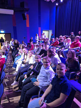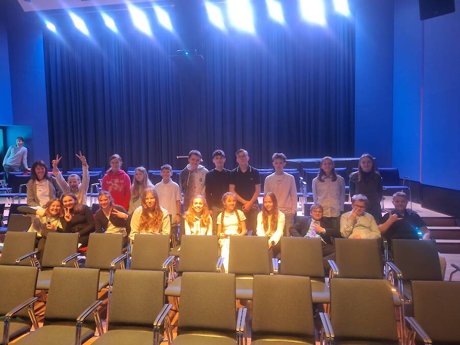 Für die Schülerinnen und Schüler der 6a wartete nach dem Applaus noch eine besondere Überraschung. Sie hatten die Gelegenheit, im Anschluss an die Vorstellung direkt mit der Theaterpädagogin und den Schauspielern ins Gespräch zu kommen. In einer spannenden Fragerunde erfuhren sie aus erster Hand, wie viel Arbeit in einer solchen Inszenierung steckt, wie man sich so viel Text merkt und was hinter den Kulissen passiert, wenn der Vorhang fällt.