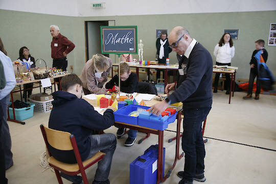 In der Turnhalle bot sich Besuchern eine vielseitige Messe der Fachschaften: Verschiedene Fachbereiche präsentierten anschaulich ihre Inhalte, boten Einblicke in Unterrichtskonzeptionen und standen für Gespräche mit Lehrkräften, dem Vorstand, der Schulleitung und dem gesamten Team zur Verfügung.