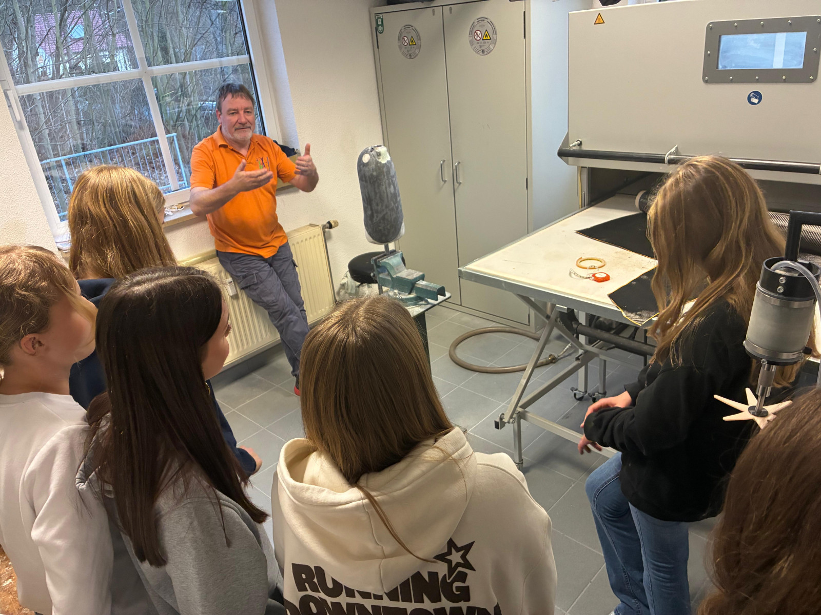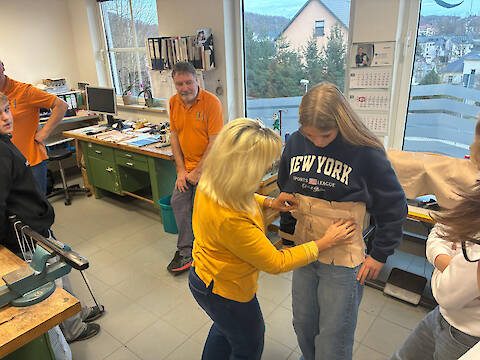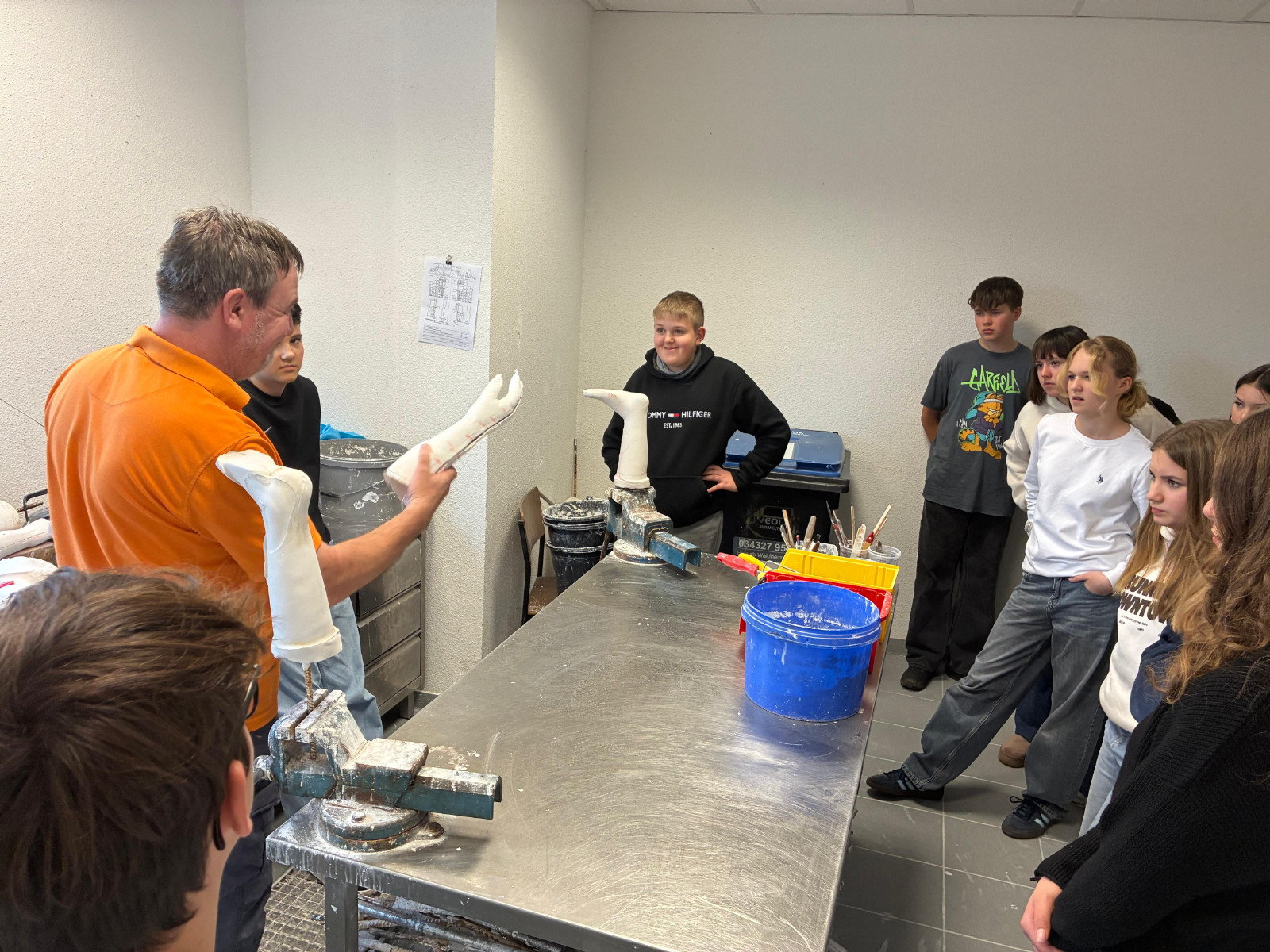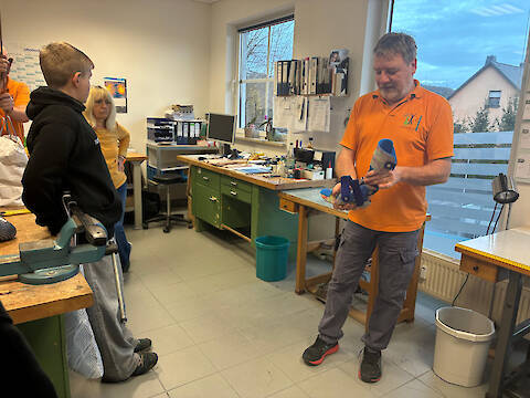 Am 08.12.2025 durften interessierte Schülerinnen und Schüler der Evangelischen Werkschule Milkau im Rahmen des „care4future“-Projekts die Rehaland Orthopädietechnik GmbH in Waldheim besuchen. Herr Blochwitz und sein Team gaben spannende Einblicke in die Herstellung von Hilfsmitteln, die Mobilität und Teilhabe ermöglichen. Die Veranstaltung wurde von unserer Praxisberaterin Frau Pumpol organisiert und finanziert aus dem sächsischen Projekt „Praxisberater an Oberschulen“.