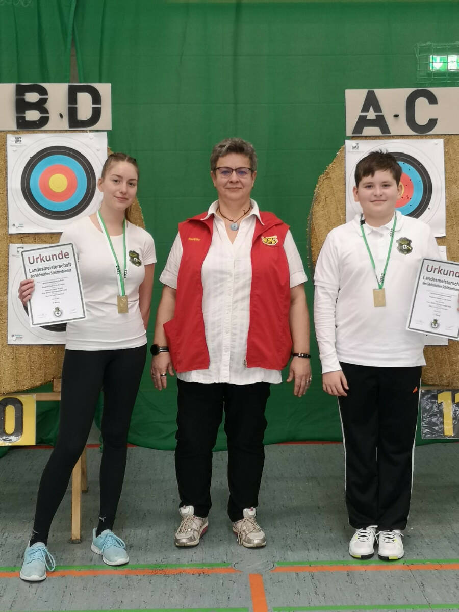 Beide gewannen am 22.01.2022 bei der Sächsischen Hallenlandesmeisterschaft im Bogenschießen in Annaberg-Buchholz in ihrer Altersklasse Gold!