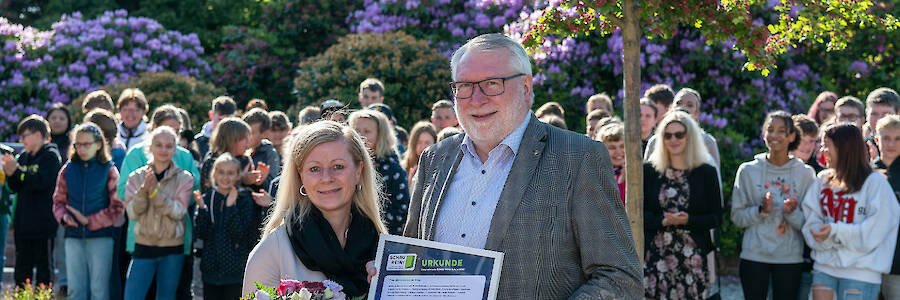 Der gestrige Dienstag war für uns ein besonderer Tag: Der Landrat Herr Damm war bei uns zu Gast und überreichte unserer Schule den Titel "Ausgezeichnete Schau-rein!-Schule 2022".