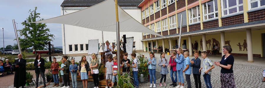 Am 28.08.2022 begrüßten wir auf dem Schulhof unsere beiden neuen fünften Klassen zum Schulanfangsgottesdienst. "Neue Wege gehen" und dabei Unterstützung von anderen Menschen erhalten, war das Motto der Andacht von Herrn Weidauer.