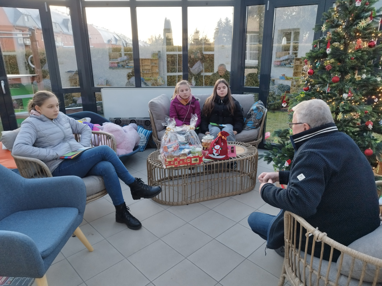 Im Gepäck hatten wir sprichwörtlich einen „Sack voll Geld“: Spenden, die wir im Zuge des 10. Adventskonzertes für den Verein gesammelt haben. Emsige Schülerinnen und Schüler haben im Vorfeld Plätzchen gebacken, verziert, verpackt und natürlich auch genascht. Der Erlös aus dem Verkauf und der gesammelten Kollekte belief sich auf ca. 1700 €. In Chemnitz wurden wir empfangen von Peter Hänel, ein langjähriger ehrenamtlicher Mitarbeiter und frisch gebackenes Vorstandsmitglied. Er erzählte begeistert aus seiner Arbeit im Verein und über die Familie, die er im Moment begleitet. Schön, dass es so engagierte Menschen gibt, die diesen wertvollen Dienst tun.