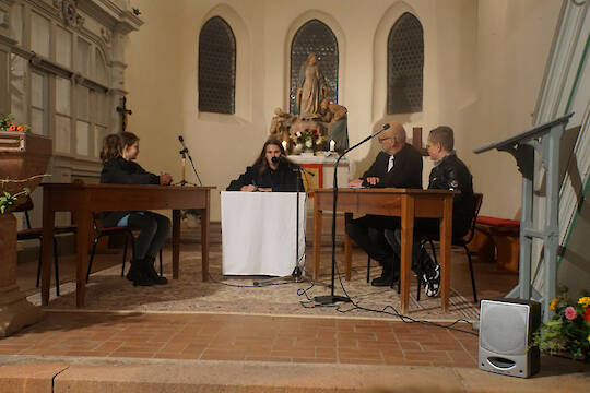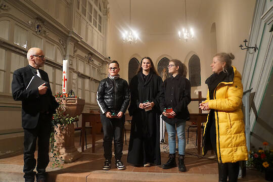 Herr Weidauer eröffnete den Gottesdienst in der Milkauer Kirche. Mit einem Anspiel unterstützten ihn drei Schülerinnen und Schüler und verdeutlichten wie wichtig es ist, Verantwortung füreinander zu übernehmen. Am Ausgang der Kirche wurden die von der AG “Kochen” gebackenen Martinshörnchen geteilt.