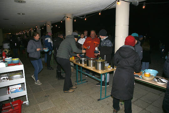 Mit Lampions und Fackeln trat die Gemeinschaft gegen 18 Uhr den Weg zum Werkschulhof an. Dort warteten bereits die Eltern der 6. Klassen mit leckeren und vielfältigen Suppen und Wienern auf die Gäste. #