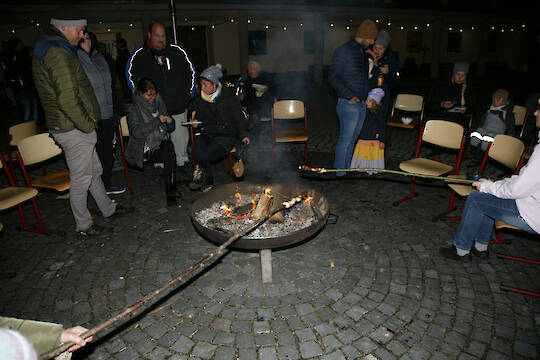 Am Lagerfeuer konnten sich Klein und Groß ein Stockbrot backen und aufwärmen. Der Posaunenchor Milkau sorgte nebenbei für musikalische Unterhaltung.