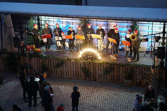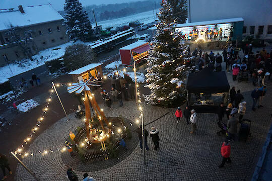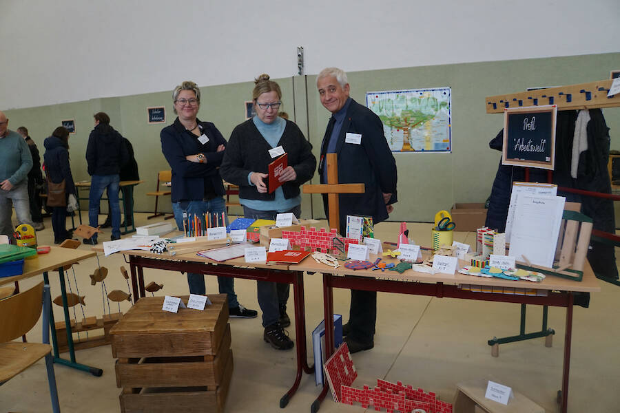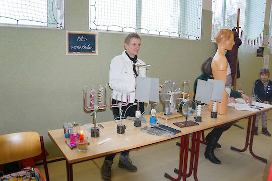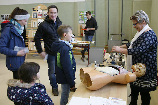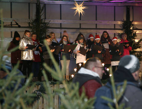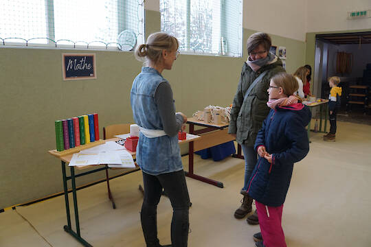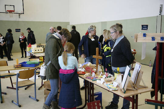 Wir empfingen alle interessierten Familien in der Turnhalle bei unserer Schulmesse, bei der die Möglichkeit bestand sich über unsere Profile, die Ganztagesangebote und einzelne Fächer zu informieren. Der Vorstand, die Schulleitung sowie das gesamte Kollegium standen für Gespräche zur Verfügung und der Schülerrat bot Rundgänge durch das Schulgebäude an, dass die Gäste sich ein Bild von den Räumlichkeiten der Schule verschaffen konnten. Gegen 15 Uhr trat unser Schulchor mit weihnachtlichen Liedern auf dem Weihnachtsmarkt auf und die Klasse 9b versorgte die Besucherinnen und Besucher mit leckeren Kuchen, belegten Brötchen, Waffeln und Kaffee.