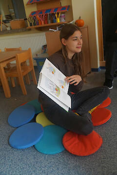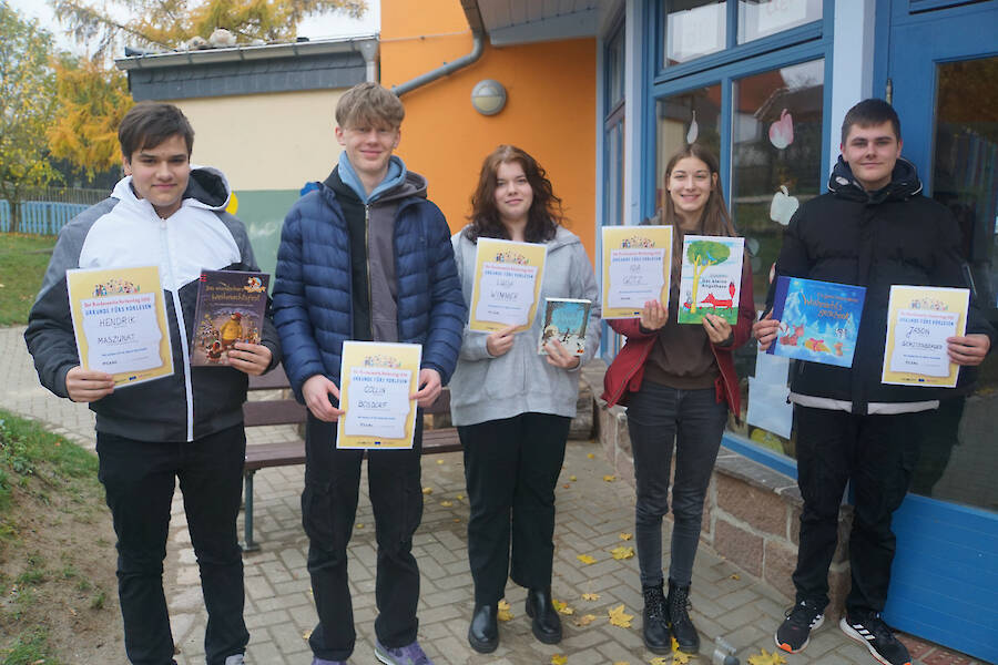 Fünf unserer diesjährigen Absolventinnen und Absolventen besuchten zudem am Morgen die Kinder des Milkauer Kinderlandes. Mit Geschichten wie “Der kleine Angsthase” oder “Stockmann” trugen sie zu einem besonderen Vorlesetag für die Kita-Kinder bei. Als Dankeschön für ihr Engagement erhielt jeder von ihnen eine Vorlese-Urkunde.