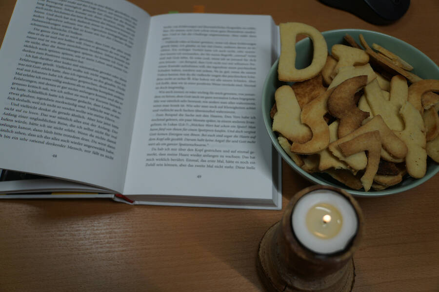 Als kleines i-Tüpfelchen für diese besondere Stunde hat Frau Göbel mit den Schülerinnen und Schülern des WTH-Unterrichts leckere Buchstabenkekse gebacken, die im Anschluss an die Lesestunde von allen verzehrt wurden.