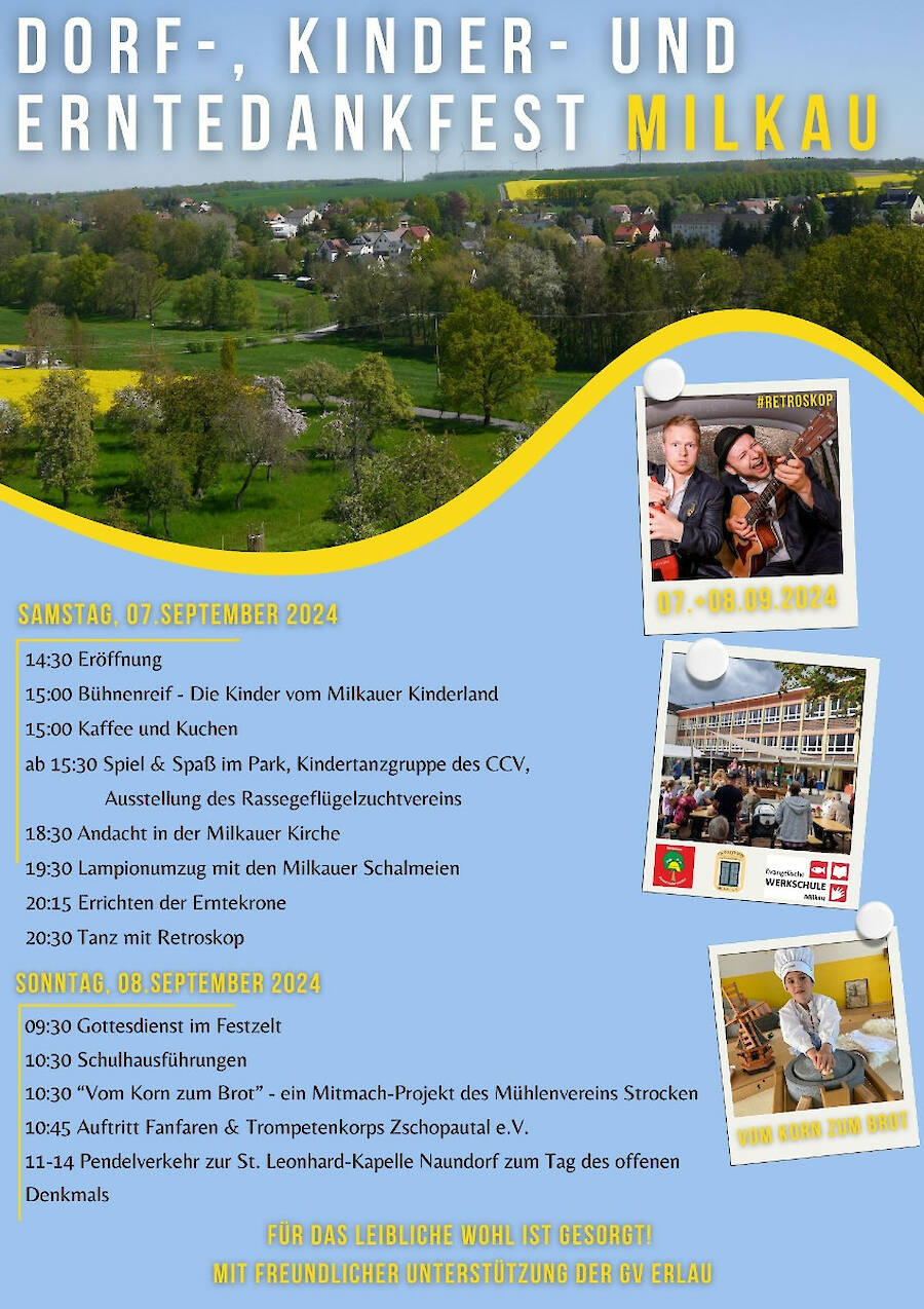 Herzliche Einladung zum Dorf-, Kinder- und Erntedankfest Milkau am 07. und 08. September 2024